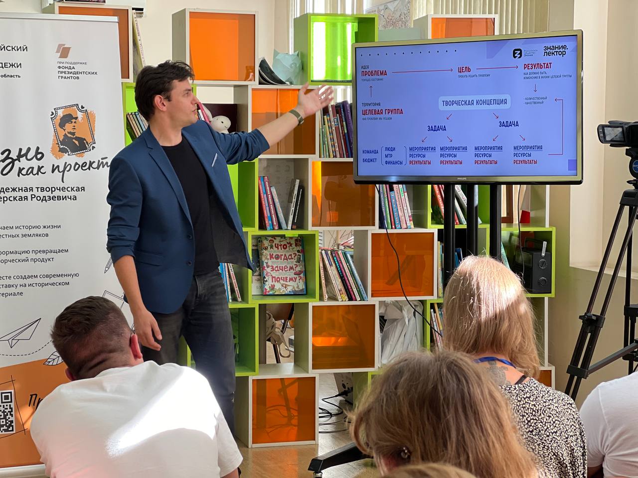 О Президентском фонде культурных инициатив говорил Никита Попов, руководитель проектного офиса Президентского фонда культурных инициатив в Рязанской области. Особое внимание в своем выступлении он уделил тому, как правильно ставить цель и задачи в проекте, как разработать его творческую концепцию.