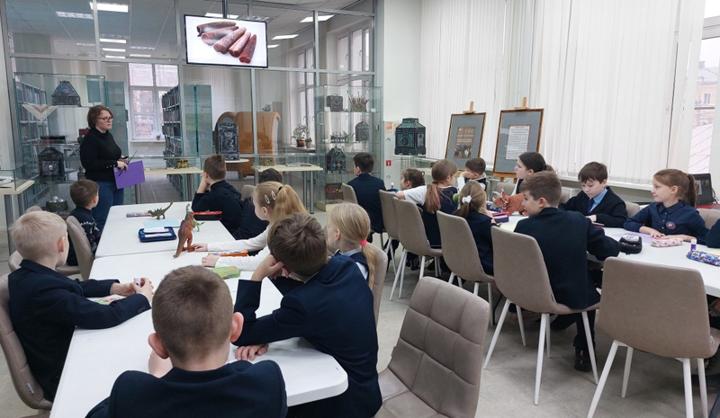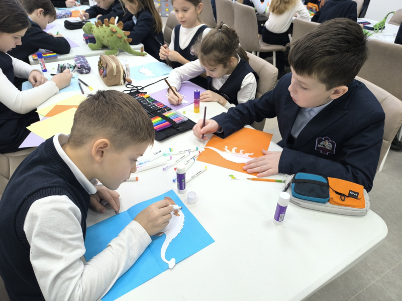 Для учащихся начальных классов гимназии № 2 в рамках Недели палеонтологии в «Горьковке» был организован увлекательный мастер-класс по созданию открытки «Динозавры на ладошке».