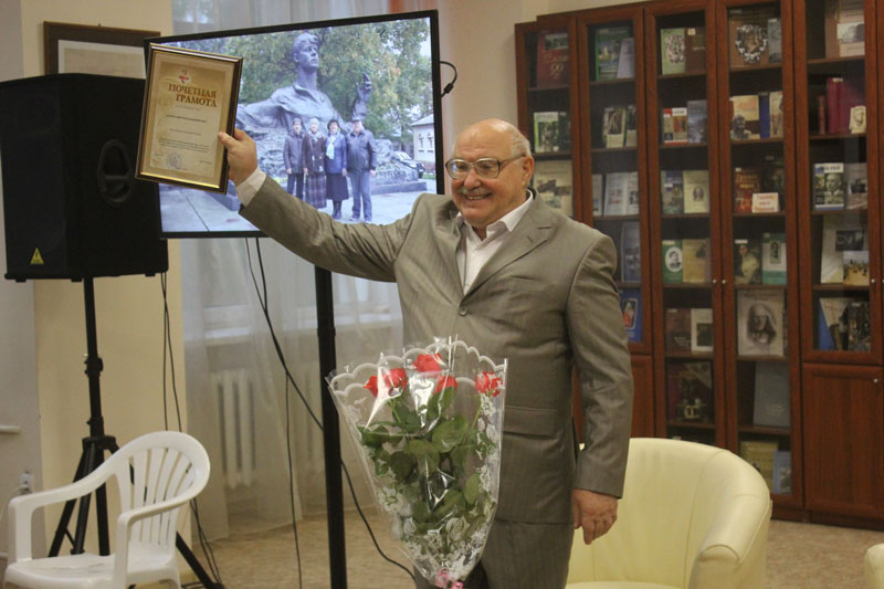 6 октября в библиотеке им. Горького состоялся юбилейный творческий вечер члена Союза писателей России Дмитрия Аравина. Юбиляру вручена Почетная грамота министерства культуры и туризма Рязанской области, благодарственное письмо от областной библиотеки имени Горького. Сам автор читал свои стихи, делился воспоминаниями.