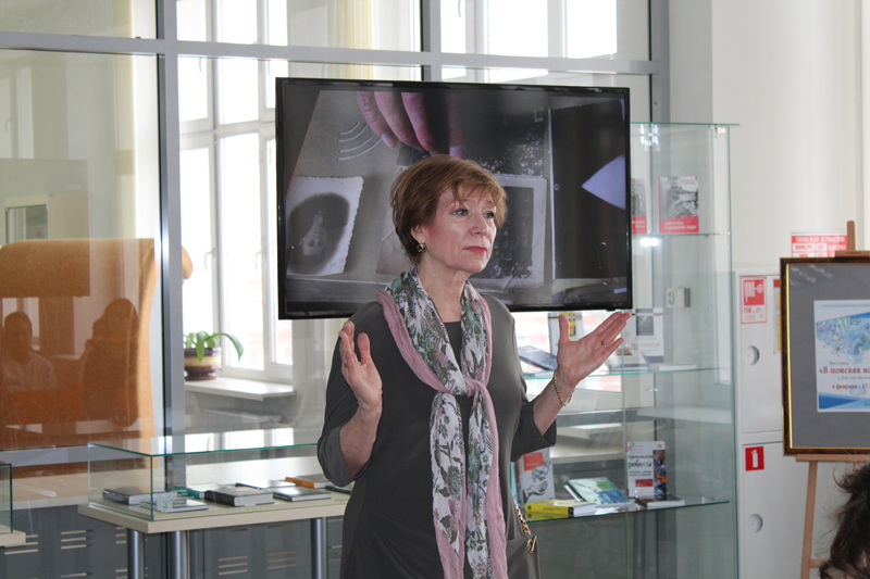 На открытии выставки перед присутствующими выступила директор библиотеки Наталья Гришина. Она проникновенно говорила о мужестве, доблести, стойкости нашего народа и о том, что ген преданности Отчизне и долгу передался и нынешнему поколению. Яркий пример интереса молодых людей к отечественной истории, стремления сохранить благодарную память, выразить глубочайшую признательность ветеранам – проект «Дневники памяти».