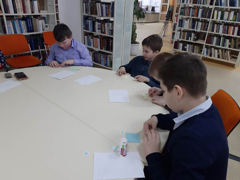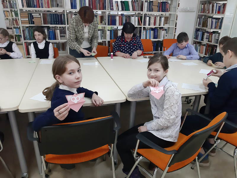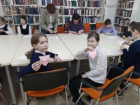На память о встрече школьники своими руками смастерили книжные закладки.