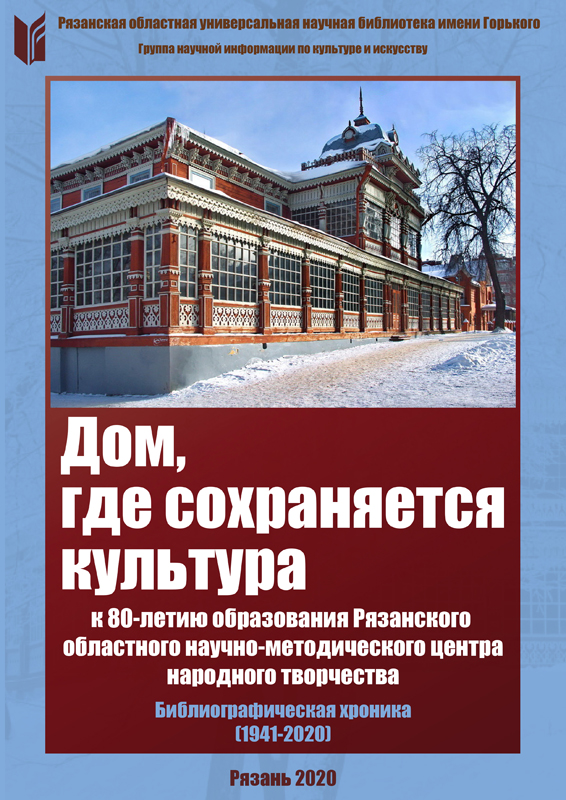 К 80-летию со дня основания Рязанского областного научно-методического центра народного творчества группа информации по культуре и искусству библиотеки имени Горького подготовила библиографическую хронику «Дом, где сохраняется культура». В ней отражены материалы об этом учреждении с 1940 по 2020 годы. Предлагаем с ними познакомиться.