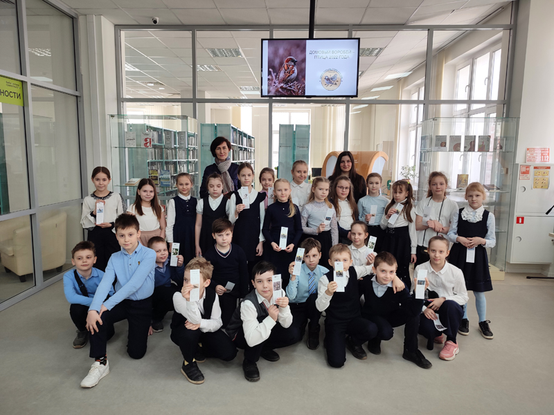 Гостями библиотеки сегодня стали учащиеся школы №43, которые посетили экологическое мероприятие, посвященное домовому воробью – птице 2022 года.