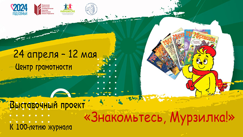 24 апреля в центре грамотности библиотеки имени Горького открылся выставочный проект «Знакомьтесь, Мурзилка!», посвященный 100-летию детского журнала. «Мурзилка» – единственное отечественное детское периодическое издание, выпуск которого не прерывался ни разу.