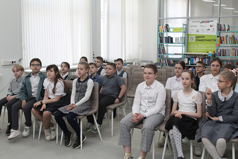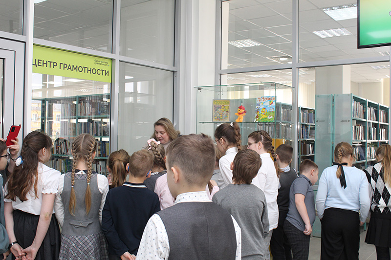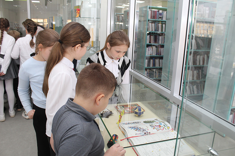 Открытие выставки прошло в виде интерактивного занятия с учениками третьего класса школы № 6 с углубленным изучением французского языка. На мероприятии дети познакомились с историей появления Мурзилки, рубриками и наполнением журнала, эволюцией оформления обложек, с биографией и творчеством А.В. Митяева.