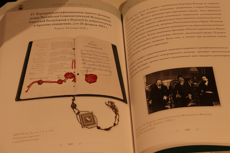 Михаил Российский представил в своей лекции два издания, которые переданы в дар библиотеке им. Горького. Юбилейное издание «Архивы МИД России: три века на службе отечественной дипломатии» приурочено к 300-летию создания архива внешнеполитического ведомства России. В альбоме представлены исторические документы, которые являются бесценным национальным достоянием, обеспечивают связь времен и поколений. По словам Михаила Российского, работа с такими документами позволяет противостоять попыткам сфальсифицировать прошлое, помогает воссоздавать его объективную картину, поскольку документ – это научный факт, и спорить с ним невозможно.