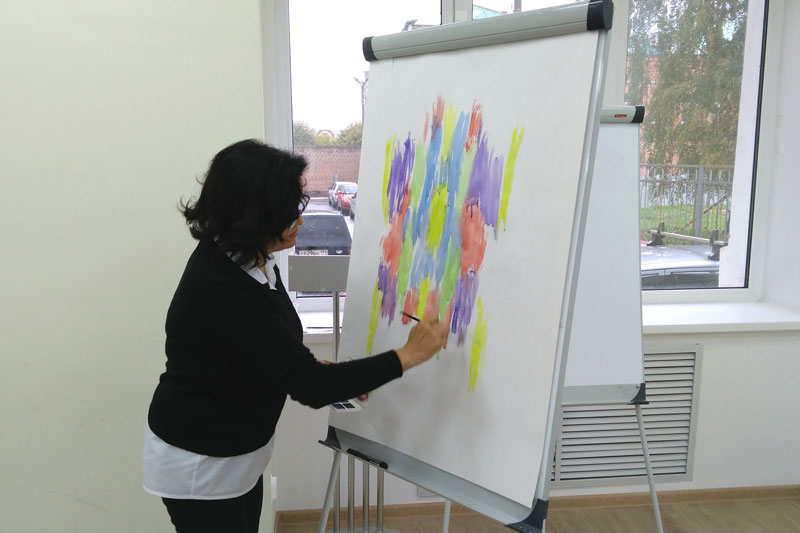 Участники встречи попробовали создать свой орнамент и отразить в нем цветовое видение природы, как в легенде о «хан-атласе».