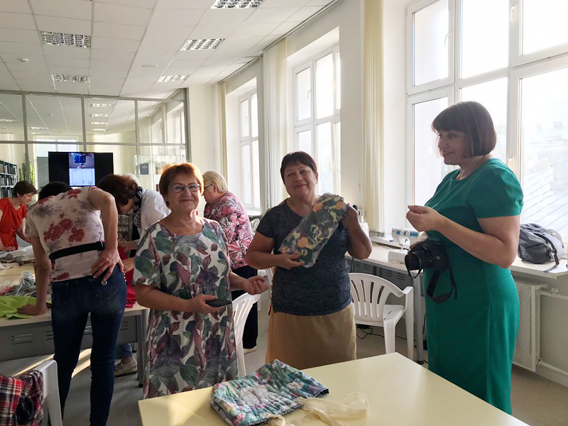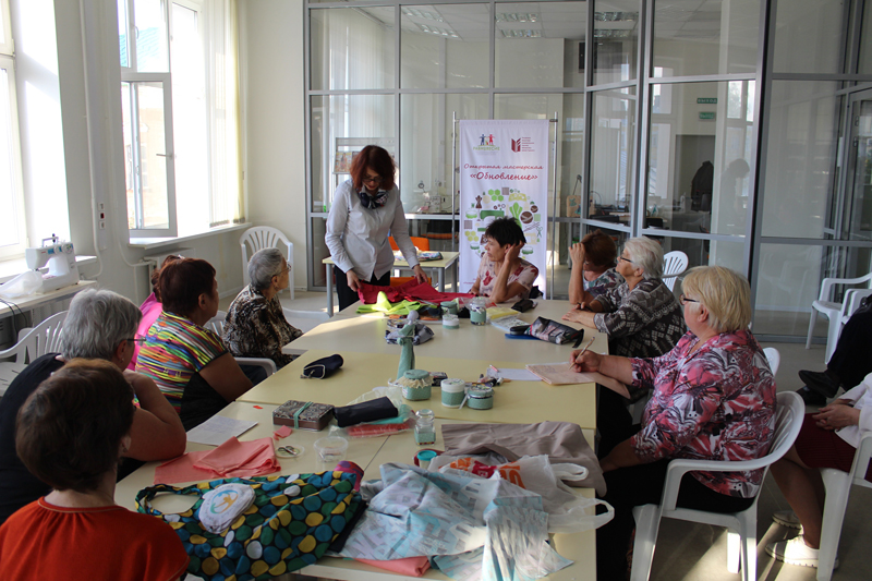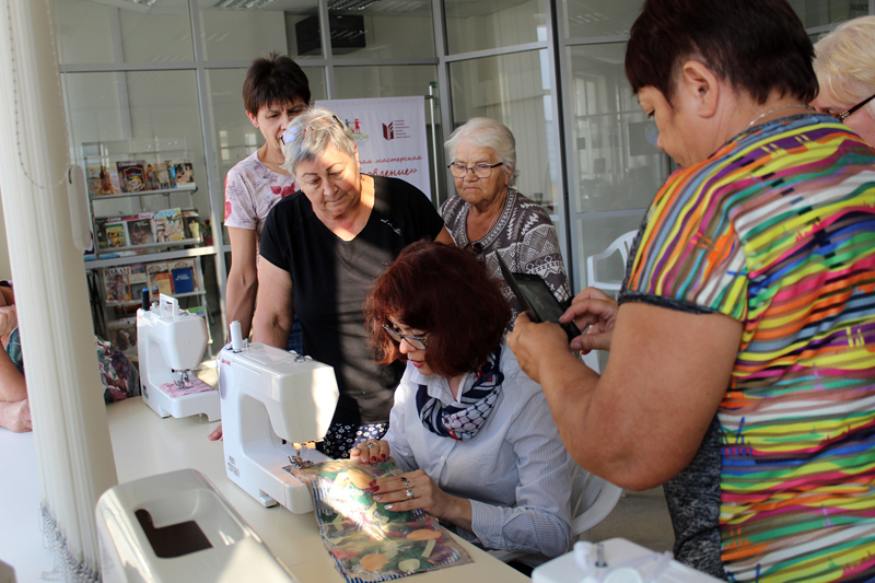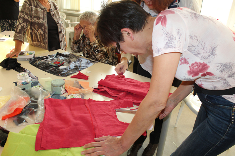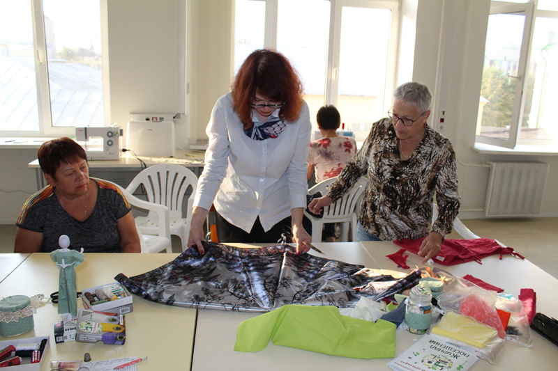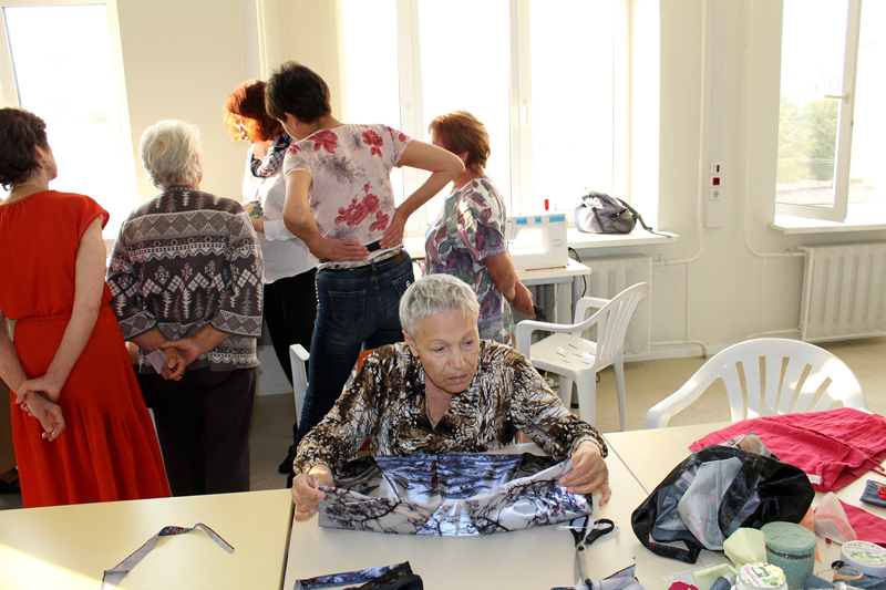 Все желающие в течение двух часов под руководством Людмилы Демидкиной и Людмилой Фирсовой – авторов проекта – учились делать сумки из того, что обычно бывает в каждом доме: из старых зонтиков и одежды, вышедшей из моды. А элементы в технике «пицца» можно было создавать из любых остатков ткани и обрезков. В мастер-классе приняли участие как постоянные участницы, уже оценившие все плюсы проекта, так и новые мастерицы. Проект поддержали и гости из регионального отделения Союза пенсионеров России. Присутствующие оценили и современное швейное оборудование, закупленное для проведения мастер-классов, и теплую атмосферу, царившую в мастерской.