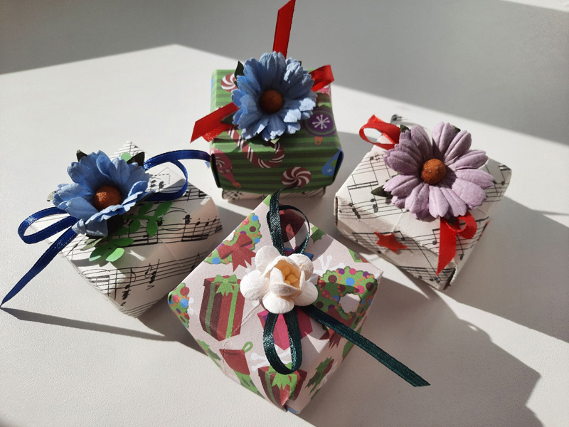 Участники творческой мастерской «Милые мелочи» решили, что маленькие знаки внимания для друзей и родных никогда не будут лишними, и приготовили для своих близких небольшие подарочные коробочки из дизайнерской бумаги и украшений. В такую коробку можно положить небольшой сувенир или сладости, а можно наполнить её записками с добрыми пожеланиями. В любом случае тот, кто получит такой подарок, запомнит его надолго.