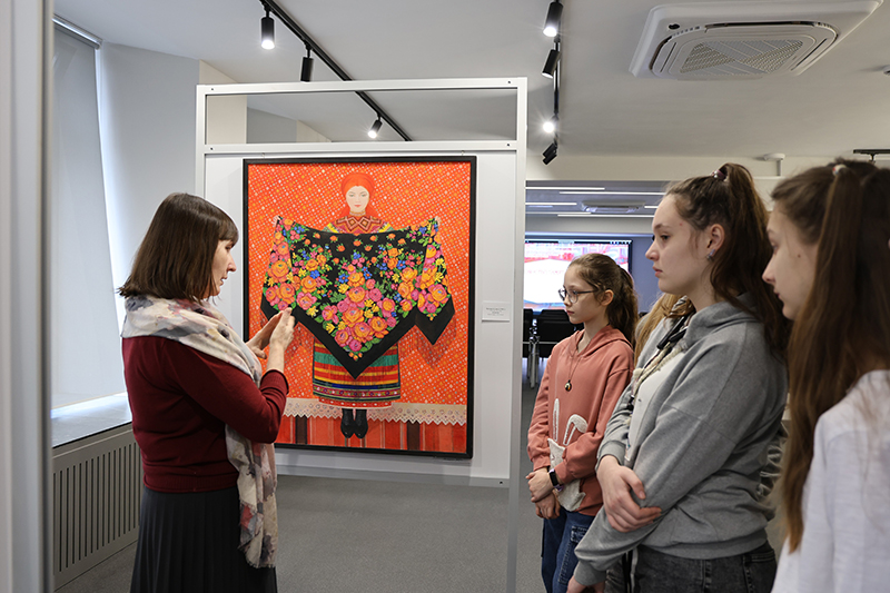 В концертно-выставочном зале Школы креативных индустрий (ШКИ) состоялась экскурсия по выставке «Постоянство памяти или трансформация». Куратор Марина Алексеевна Абрамова провела экскурсию по действующей экспозиции для обучающихся ШКИ студии «Дизайн».