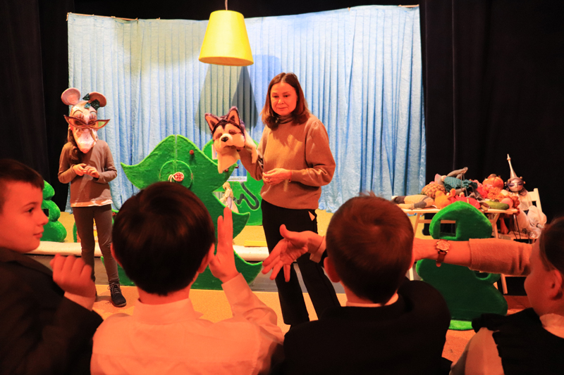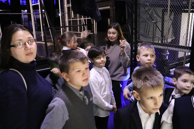 В фойе ребят встречал художественный руководитель театра Валерий Шадский. Вместе со Светланой Федяевой, педагогом театра, юные актеры совершили путешествие по волшебному миру театрального закулисья. Ребятам рассказали об истории Рязанского театра кукол, они узнали, как рождается спектакль, что происходит за кулисами и в зрительном зале, как работают костюмеры, реквизиторы и бутафоры.