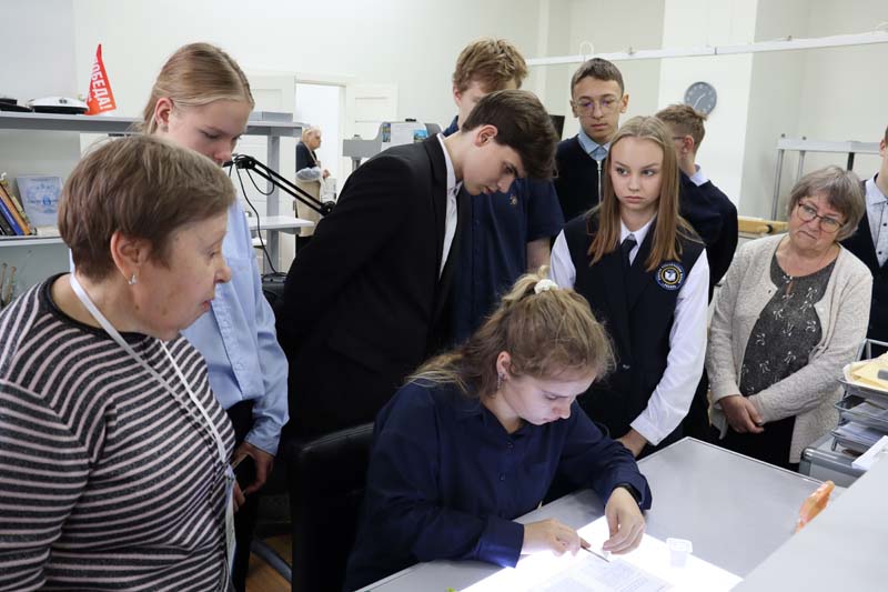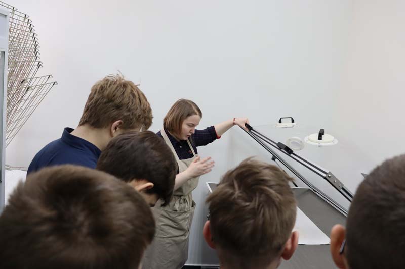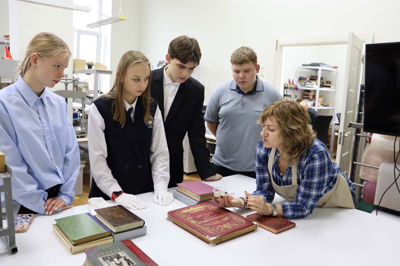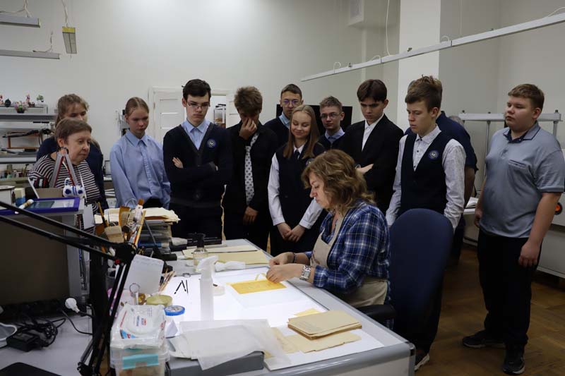 Школьников познакомили с процессом реставрации книг. Рассказали о первоначальной диагностике состояния документов. Показали, как с помощью пара на специальном вакуумном столе очищают сильно поврежденную бумагу. Особый интерес вызвал процесс промывки бумажных листов.