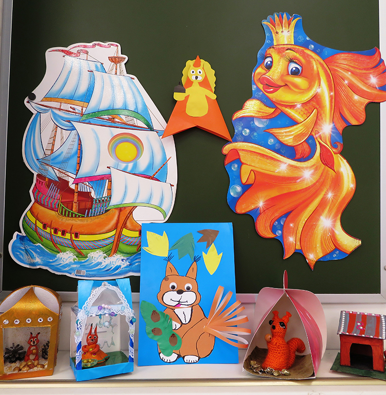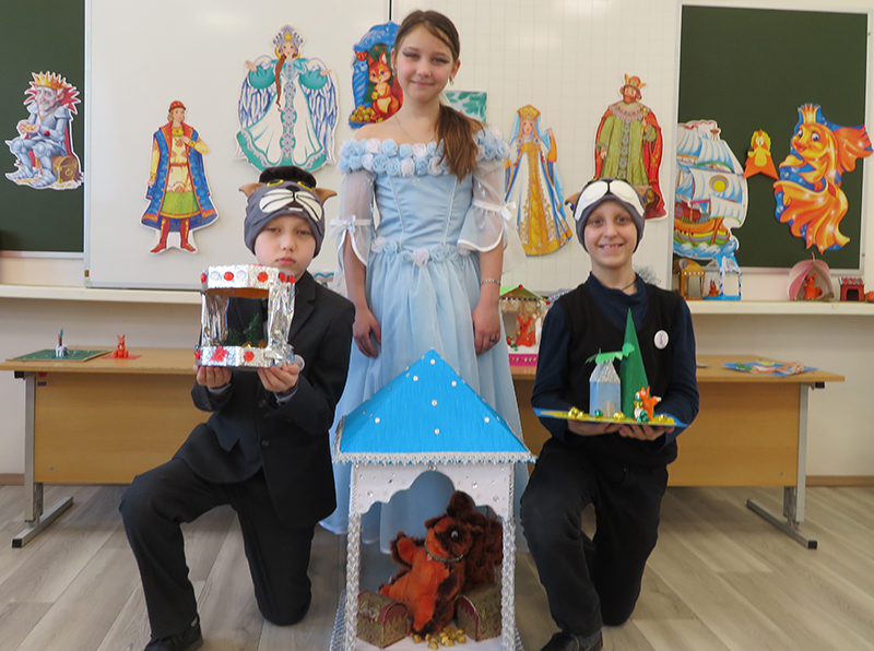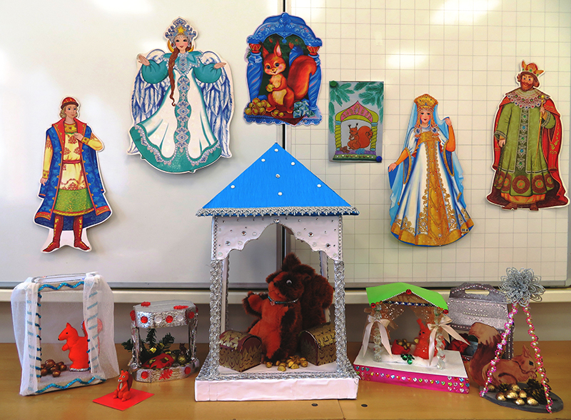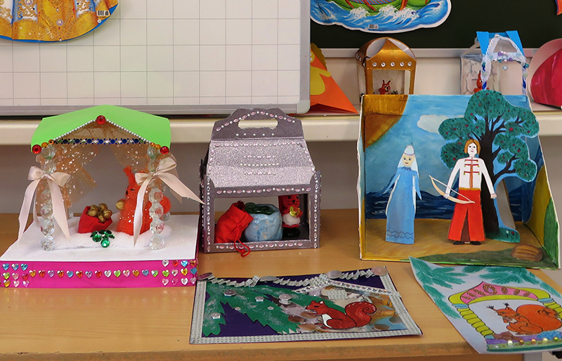 Школьники подготовили к интерактивной программе разнообразные поделки – панно, объемные картины, фигурки с изображением чудо-белки и хрустального дома.