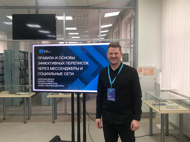 Ярким и эмоциональным было выступление Николая Вешты, лектора Российского общества «Знание», председателя Рязанской городской общественной организации «Центр развития добровольчества города Рязани», руководителя Рязанского городского клуба «Ораторы города Р.», тренера по ораторскому искусству, позитивной психологии, SMM и социальному проектированию.