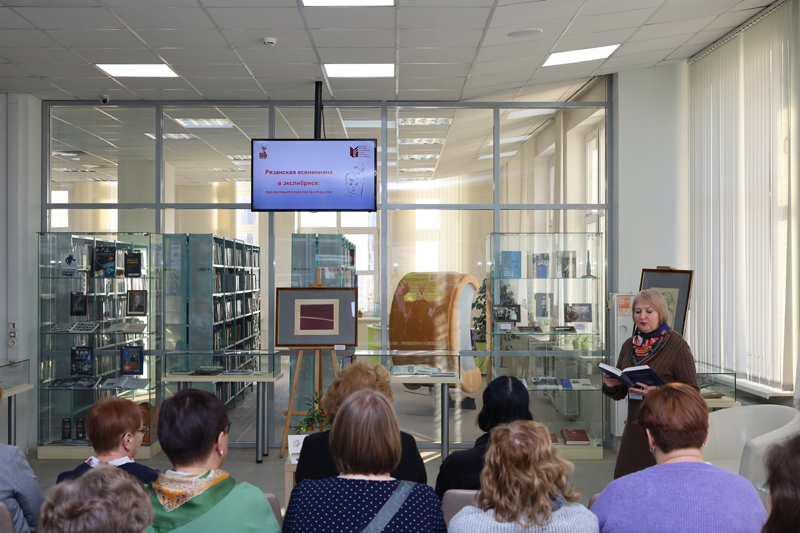 Автор проекта – главный библиотекарь отдела хранения «Горьковки» Ирина Леонова – рассказала об экслибрисах, размещенных в комплекте, и об их авторах, о контактах с наследниками художников, коллекционерами и учреждениями культуры, предоставившими книжные знаки для публикации. Мероприятие украсили и согрели теплом есенинских строк песни в аудиозаписи Государственного Рязанского русского народного хора имени Евгения Попова.