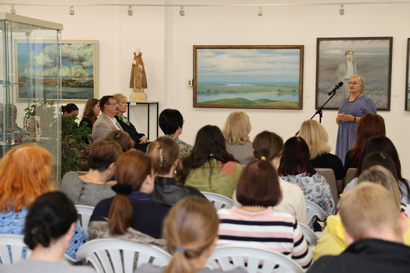 К участникам выставки обратилась заслуженный работник культуры РФ, член Правления Рязанской областной организации ВТОО «Союз художников России» Татьяна Петровна Власова. Татьяна Петровна отметила, что выставка позволяет погрузиться в поэзию Есенина. Каждая строка поэта – это живопись, которую можно увидеть в цвете.