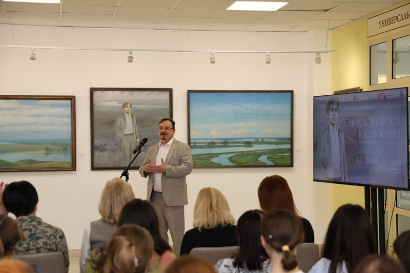 Сегодня в экспозиционном зале библиотеки имени Горького состоялось открытие выставочного проекта «Есенинской строкою вдохновленные…», приуроченного к 130-летию со дня рождения С.А. Есенина и XI Межрегиональному фестивалю национальной книги «Читающий мир».