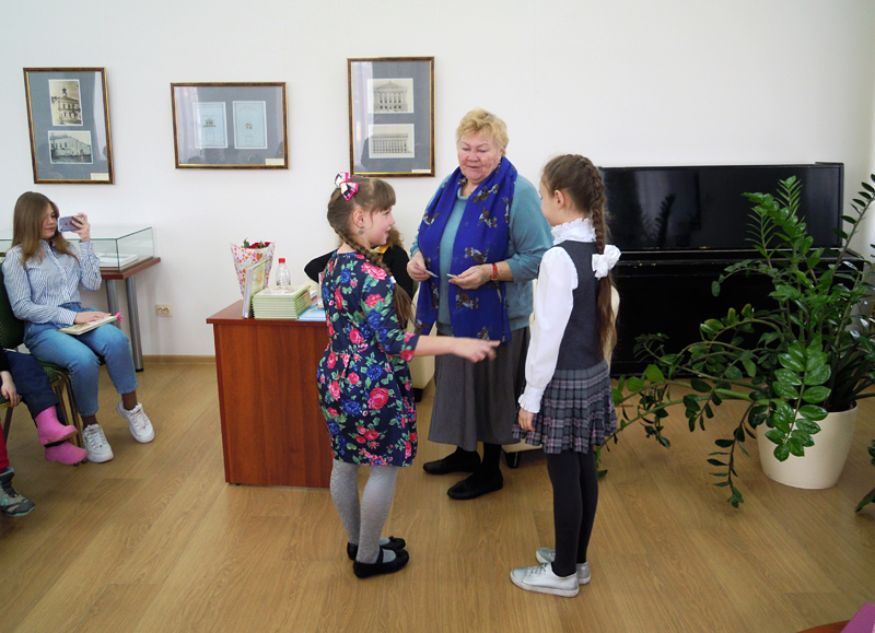 Майя Петровна рассказала о том, что ее любимая собака, помогавшая ей на даче, и стала героем сборника. Много вопросов юные читатели задавали иллюстратору книги – Варваре Маришиной, создавшей яркие рисунки. Затем девчонки и мальчишки с удовольствием мастерили открытку с изображением собаки и радовались результатам своего труда.