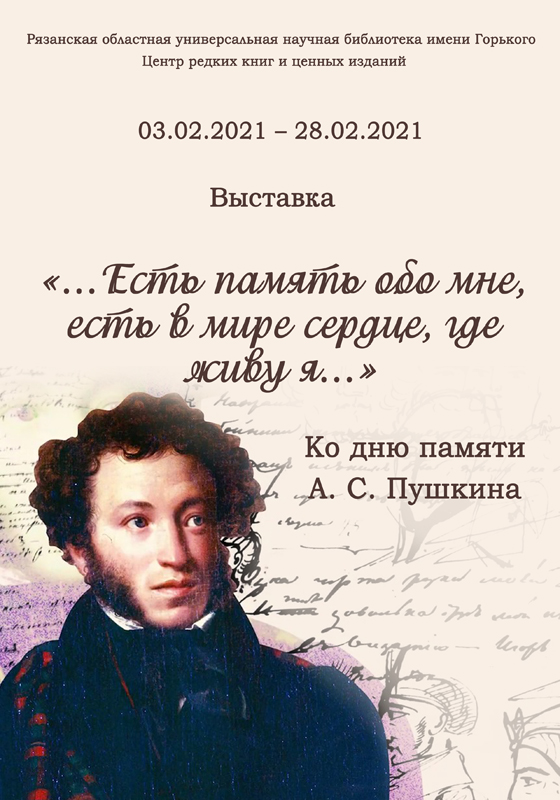 В читальном зале Центра редких и ценных изданий библиотеки имени Горького работает выставка ко Дню памяти Александра Сергеевича Пушкина.