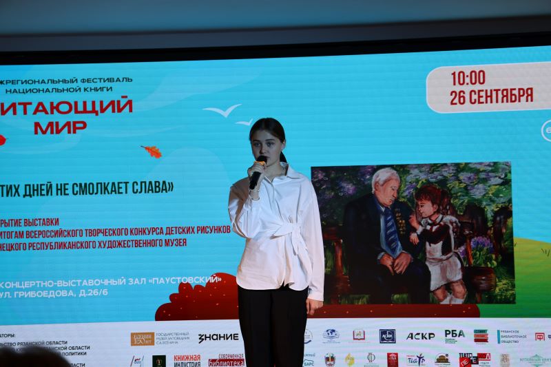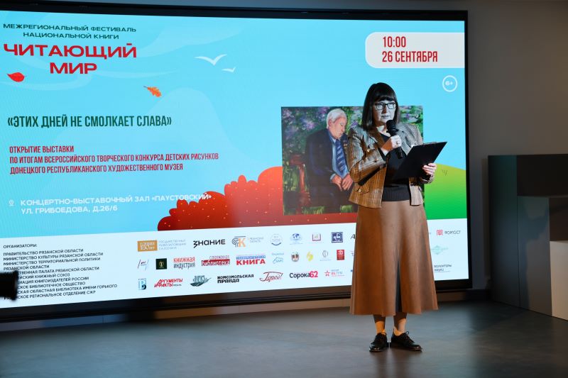 26 сентября в Концертно-выставочном зале «Паустовский» Рязанской областной универсальной научной библиотеки имени Горького (по адресу ул. Грибоедова, 26/6) состоялось открытие выставки «Этих дней не смолкает слава», организованной РОУНБ имени Горького и Донецким республиканским художественным музеем.
