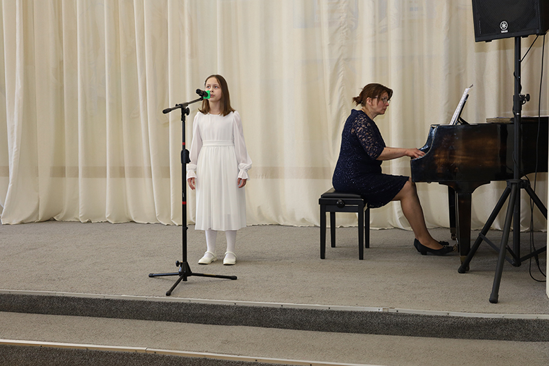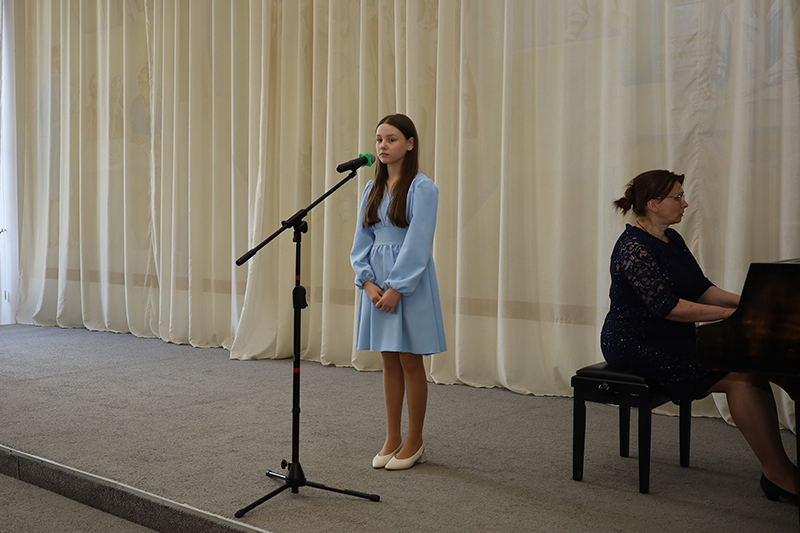 В исполнении юных учащихся Детской школы искусств № 1 прозвучали лучшие стихотворения и песни о советских воинах, ветеранах, об их самоотверженном подвиге. Проникновенные музыкальные номера подарили вокалисты Анна Пименова, Екатерина Пименова, Мария Бобылева, София Бирюкова, Иван Бурдин, Анастасия Гудкова, Виктория Паршина, Анастасия Шатохина, Елизавета Кудинова, Любовь Медведева. В исполнении старшего хора (руководитель Н. Г. Юдаева) прозвучали известные произведения «Матерям погибших героев» К. Ибряева и «День Победы» Д. Тухманова.