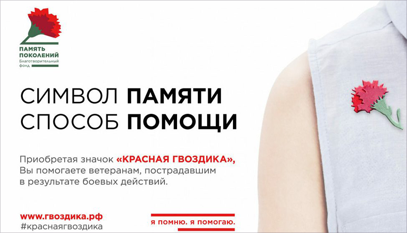 Знакомый многим значок «Красная гвоздика», символ акции, стал ярче, теперь он сделан из металла. Передавая памятный символ из поколения в поколение, мы надеемся, что наши дети и внуки будут помнить о доблести героев родной страны, что будет жить память о подвигах ветеранов, которые на протяжении многих лет защищали нашу Родину на полях сражений и в тылу.