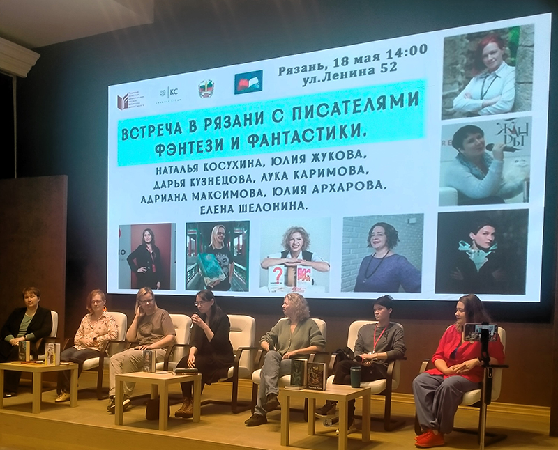 В рамках проекта «Фантастика – от Москвы до самых до окраин» состоялась творческая встреча с писателями, работающими в жанре романтического фэнтези: Натальей Косухиной, Юлией Жуковой, Дарьей Кузнецовой, Лукой Каримовой, Еленой Шелониной, Юлией Архаровой, Адрианой Максимовой.