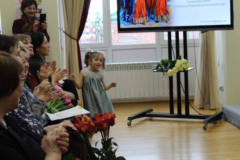 С наступающим Международным женским днем собравшихся поздравила директор областной библиотеки имени Горького, председатель областного Совета женщин Наталья Николаевна Гришина. Неожиданным подарком в этот день для Натальи Николаевны, как для истинной мадонны, стал музыкальный подарок-посвящение от Ихтиандра Кадирова «Букет из белых роз» и настоящий букет из белых роз.