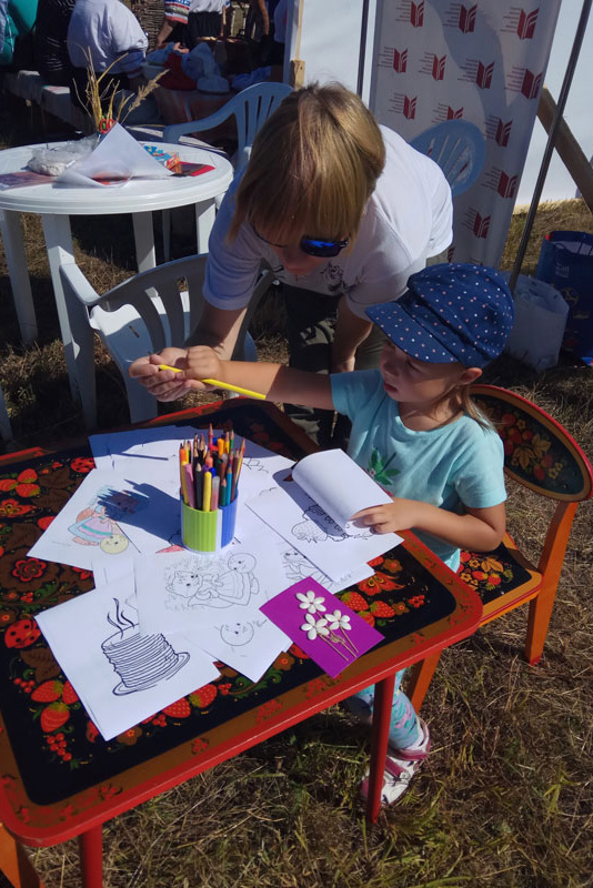 Участие в «Рязанском каравайце» приняла и библиотека имени Горького. На фестивале работала книжная лавка – все желающие могли приобрести научно-популярную, историческую литературу, путеводители, книги по кулинарии и издания для детей. Юные гости с удовольствием посещали детскую площадку, где можно было вдоволь порисовать, создать необычную открытку, украсив ее тыквенными семечками, колосками или «космическими» макаронами, а также смастерить закладку-лисичку!