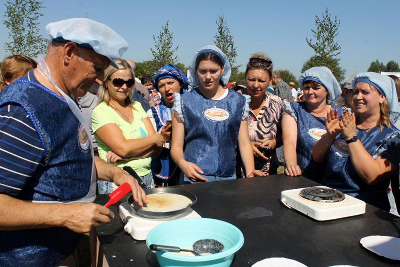 Уникальная самобытность рязанских сел и деревень отразилась в кулинарных шедеврах, сделанных из блинов участниками фестиваля: тут и сельские подворья, и шкатулки, и фигурки людей и животных, и «пеньки» с грибами, и даже портрет Царевны Несмеяны. Старания мастеров не прошли даром. Выставленные ими на аукционе блюда были проданы за полчаса. Все полученные деньги – 71 900 рублей и 100 долларов – будут переданы Рязанскому дому ребенка, который в этом году отмечает юбилей – 100 лет со дня создания.