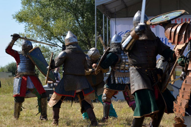 Около главной сцены гости наблюдали за исторической реконструкцией «Битвы на Листани», которая напомнила о победе рязанских казаков в 1444 году над монгольским ханом Мустафой.