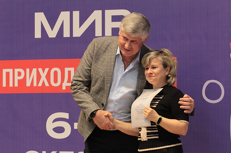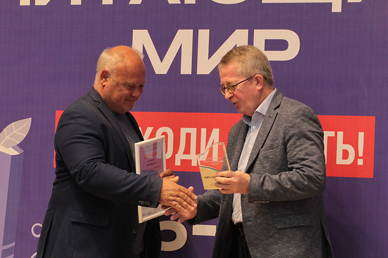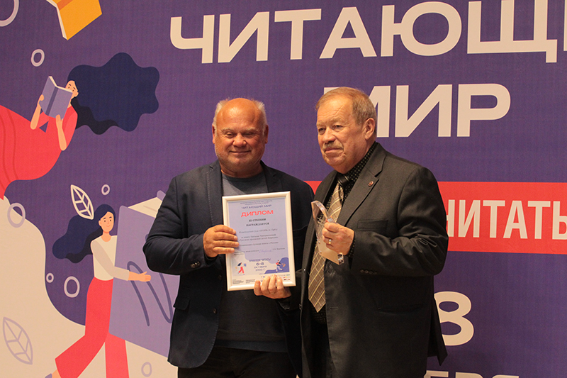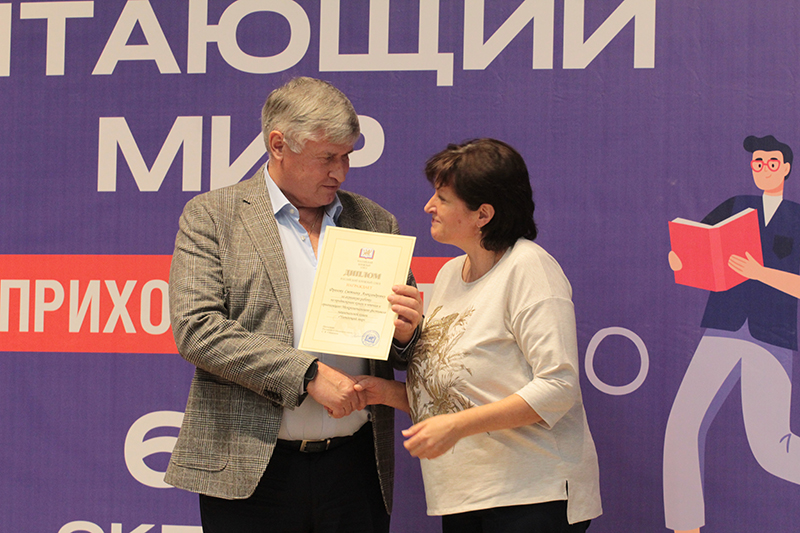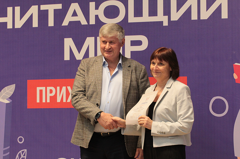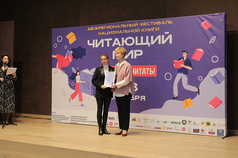 Л.Л. Палько вручил награды Российского книжного союза Н. Н. Гришиной и сотрудникам областной библиотеки имени Горького за активную работу по организации книжных фестивалей в Рязанской области.