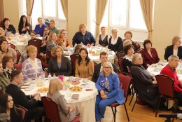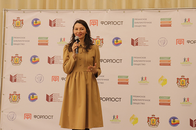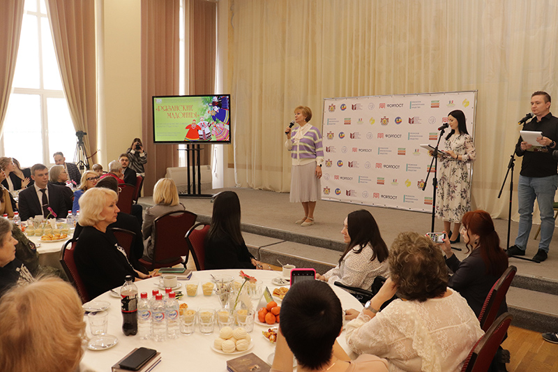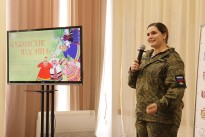 Директор библиотеки, председатель Общественной палаты Рязанской области, председатель регионального отделения Союза женщин России Наталья Николаевна Гришина сердечно поздравила гостей с наступающим праздником. Она поблагодарила всех за большой вклад в самое главное дело, которым живет сейчас Союз женщин – организацию помощи воинам СВО, работу по сбору посылок, поддержку семей военнослужащих.