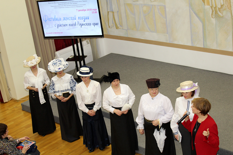 Творческое объединение «Женская рифма» в составе Валентины Бондаренко, Татьяны Бочаровой, Натальи Ведюшенко, Светланы Успенской показали новую поэтическую композицию, разумеется, о любви. Свои стихи, как новые, так и уже полюбившиеся рязанской публике, представили Ольга Сидорова, Людмила Гоенко, Наталья Ивахненко, Лидия Терехина, Людмила Лакаткина, Ирина Челиканова, Евгения Шумаева, Валентина Липина. Людмила Васютина не только читала, но и исполнила песни и романсы на собственные стихи под аккомпанемент гитары, сорвав бурные аплодисменты и крики «браво». На фестивале выступил женский клуб «Вуаль» библиотеки имени Горького с демонстрацией городских костюмов начала 20-го века, подтвердив расхожую истину, что таланты и возможности женщин поистине безграничны.