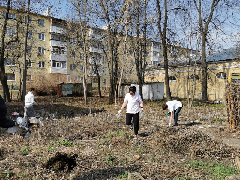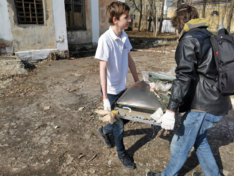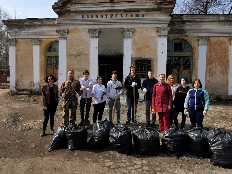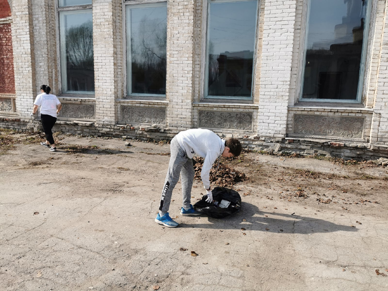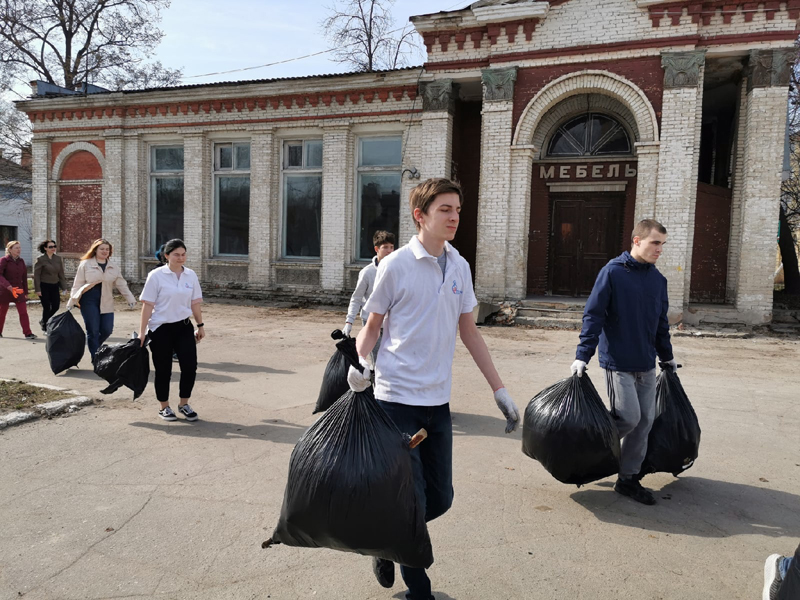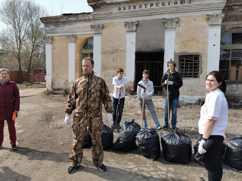 Александр Селиванов, заведующий отделом молодежных проектов и волонтерской деятельности, провел ознакомительную экскурсию и рассказал об истории возникновения Торгового городка. Все участники мероприятия активно и дружно включились в работу по очистке от мусора территории вокруг бывшего здания облпотребсоюза и близлежащего участка Торгового комплекса.