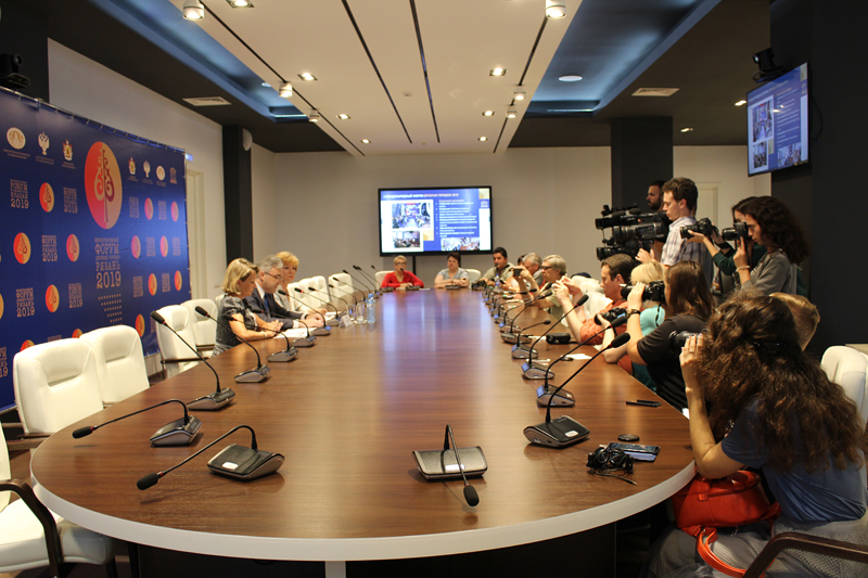Все мероприятия в рамках форума предоставляют уникальную возможность встречи и общения с людьми интересными, знающими, эрудированными. Ведущая брифинга Надежда Майорова подробно рассказала о работе пресс-центра и разъяснила журналистам, как именно будут организованы пресс-подходы.