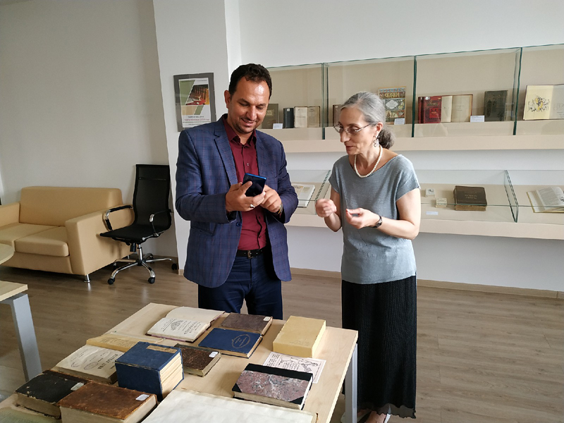 В Центре редких и ценных изданий гость рассказал о том, как библиотеки Багдада сохраняют древние книги и рукописи, и поинтересовался историей книг, попавших в нашу библиотеку.