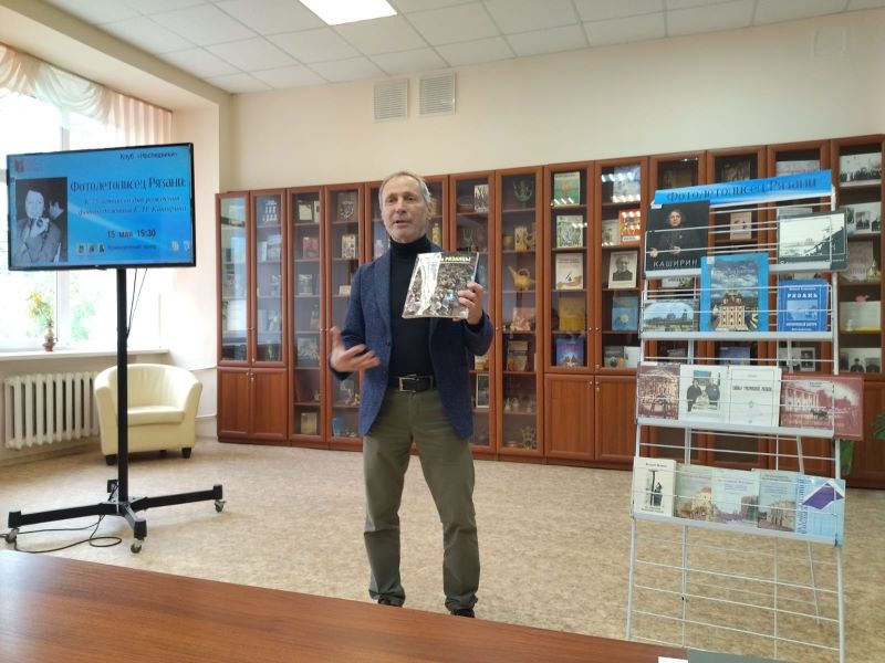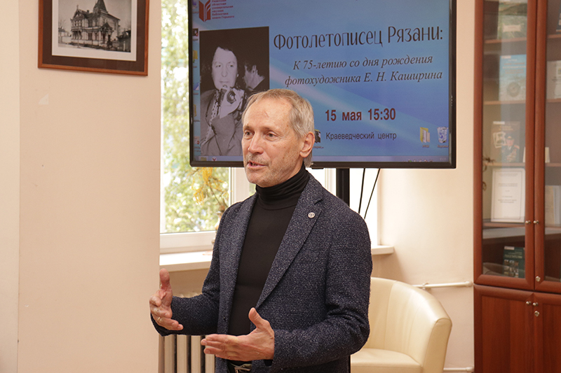 Руководитель клуба Алла Сурина рассказала о том, что Евгений Николаевич был большим другом библиотеки, часто выступал на заседаниях клуба краеведов-исследователей, показывал свои фильмы о городе и рязанцах; показала презентацию с фотографиями, где Е. Каширин выступает на клубе краеведов, и его фото с запечатленными знаменитостями – участниками заседаний клуба. Мероприятие дополнил рассказ о книгах, представленных на выставке «Фотолетописец Рязани».