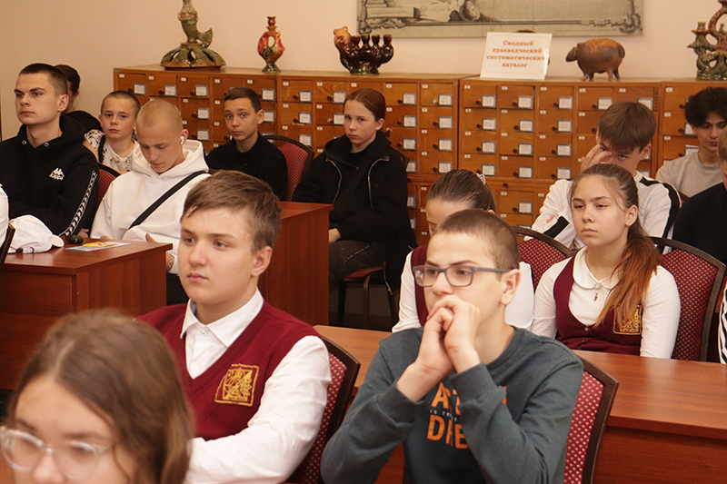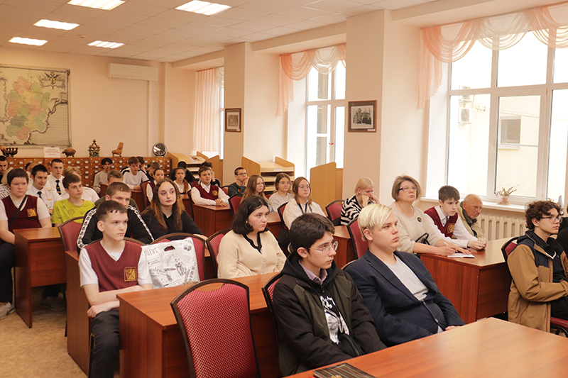 В зале собрались юные краеведы из Рязанского железнодорожного колледжа и учащиеся пяти школ – 11, 30, 47, 50 и 65-й, а также учителя и краеведы.