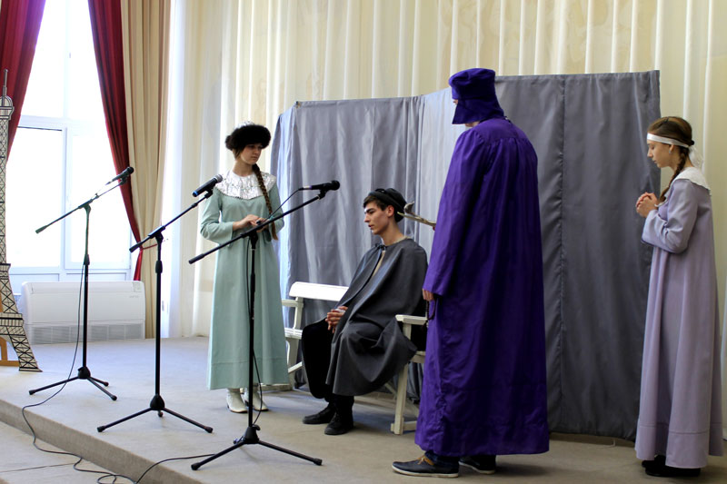 Библиотекари тоже не остались в стороне и провели со зрителями небольшой интерактив по жизни и творчеству А.И. Солженицына. Ученики показали прекрасное знание материала, отвечая на вопросы на русском и на французском языках.