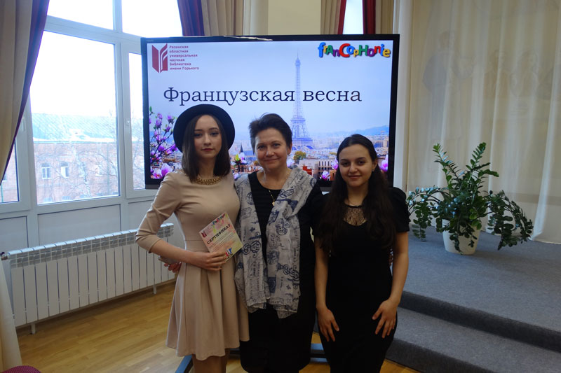 В нашем стремлении популяризировать французскую культуру нас поддержали гимназия №2, школы №6, 14, 34, 44, 67, 69, а также Рязанский многопрофильный колледж и РГУ имени С.А. Есенина. Все участники получили сертификаты и благодарности от библиотеки им. Горького.