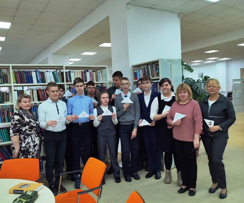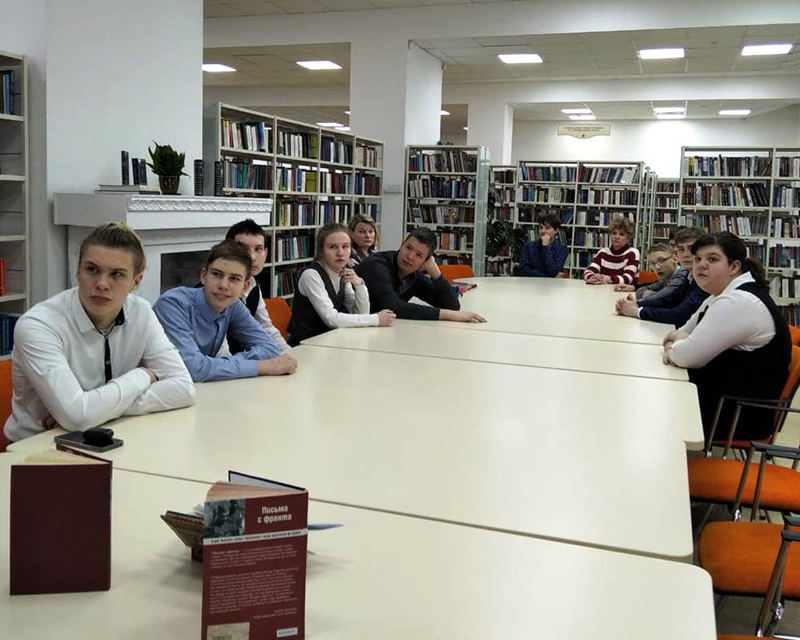 Сотрудники библиотеки рассказали, как работала военно-полевая почта, о чем писали с фронта солдаты домой. Ребята узнали о художественном оформлении фронтовых открыток, конвертов, почтовых карточек, фронтовых «секреток». В исполнении российских артистов с экрана прозвучали отрывки из писем, стихи и песни военных лет.