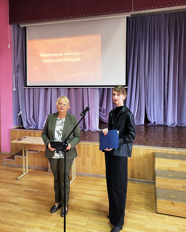 Библиотекари рассказали, как работала военно-полевая почта, о чем писали с фронта солдаты домой. Ребята узнали о художественном оформлении фронтовых открыток, конвертов, «секреток», почтовых карточек. В исполнении российских артистов с экрана прозвучали отрывки из писем, стихи и песни военных лет.
