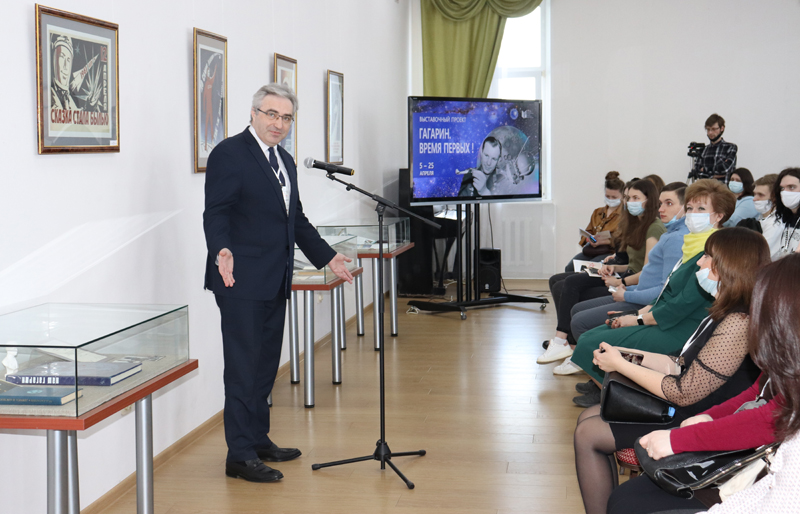 В библиотеке в рамках молодежного патриотического форума «Наука побеждать» состоялось открытие выставочного проекта «Гагарин. Время первых!». Он посвящен истории отечественной космонавтики и 60-летию полета в космос Юрия Гагарина.