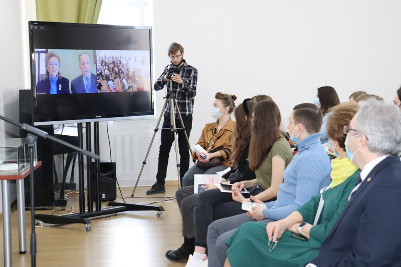В онлайн-выступлении к присутствующим обратились Арсен Мелитонян и Кэри Линн Рэди, которые в 2019 году подарили нашей библиотеке личную «космическую» коллекцию. О патриотической работе с молодым поколением рассказали научный руководитель школьного музея космонавтики им. К.Э. Циолковского Татьяна Михайлова и заведующая лабораторией по работе с одаренными детьми ресурсного центра дополнительного образования Людмила Щеголева.