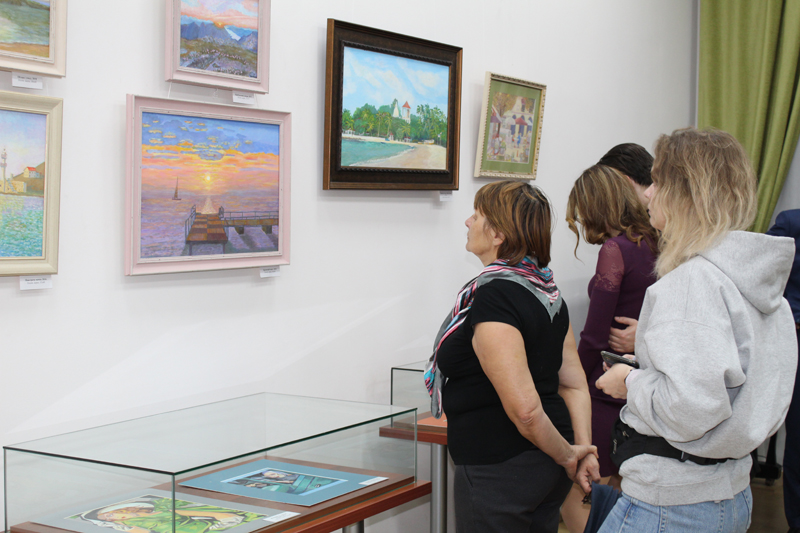 «Мой «конек» – это воспринимаемый и отображаемый в лирических пейзажах цвет», – сказала о своих работах Ольга Григорьевна Такижбаева, старший преподаватель кафедры экономики Рязанского государственного радиотехнического университета. Живопись стала ее увлечением на всю жизнь. Сейчас она занимается в арт-студии «Хобби» и ежегодно участвует в отчетных выставках, организуемых этой студией. На выставке представлены пейзажи родного Рязанского края и иноземные виды, натюрморты, иллюстрации к ее собственному стихотворному сборнику.