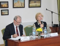 Ольга Ефимовна Воронова, член Центрального совета Скобелевского комитета, член Общественной палаты Российской Федерации, член Научного совета Российского военно-исторического общества, профессор РГУ имени С.А. Есенина, представила доклад «Россиия и Запад в политической доктрине М.Д. Скобелева».