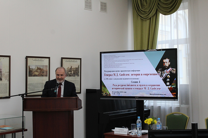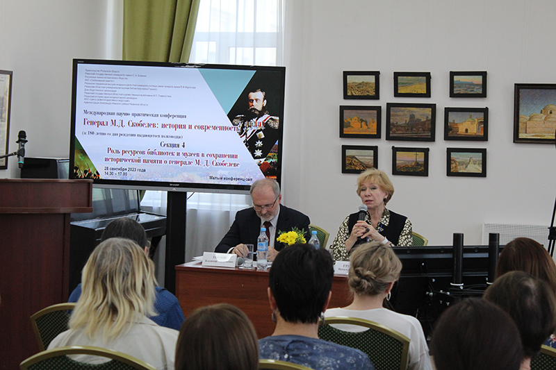 Секция «Роль ресурсов библиотек и музеев в сохранении исторической памяти о генерале М.Д. Скобелеве» прошла на базе Рязанской областной универсальной библиотеки им. Горького.