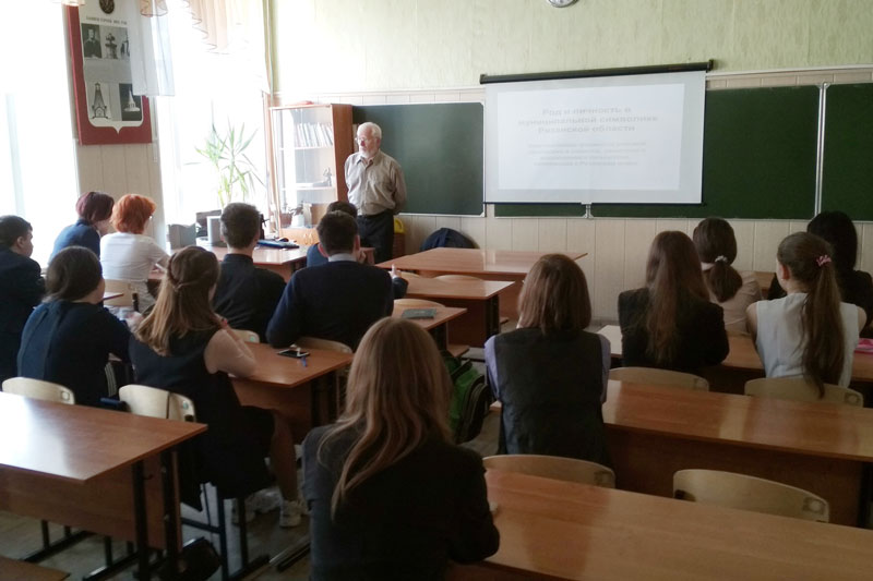 На площадке школы № 7 «Русской классической школы» г. Рязани урок провел заслуженный художник Российской Федерации, член Геральдического совета при Президенте РФ, член Геральдического совета при Губернаторе Рязанской области, почетный гражданин города Рязани Михаил Константинович Шелковенко. Учащиеся 9-го класса узнали о роде и личности в региональной муниципальной символике, об исторических, культурных, географических и других особенностях территорий, которые учитывались при создании флагов и гербов Рязанщины.