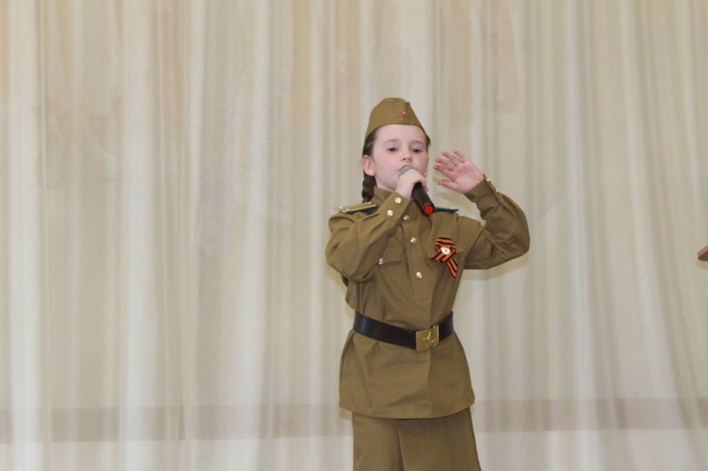 Открыла мероприятие ученица 4 класса школы № 30 г. Рязани Валерия Дронова, прекрасно исполнившая песню «Не спешите уйти, ветераны войны».